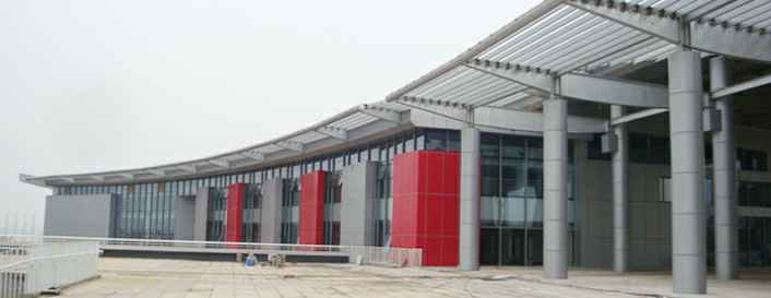 位于江西省南昌市瑶湖区大道南,建筑面积16500m2,该馆屋面型式为:圆管相贯桁架构成空间网壳结构,由40根混凝土柱